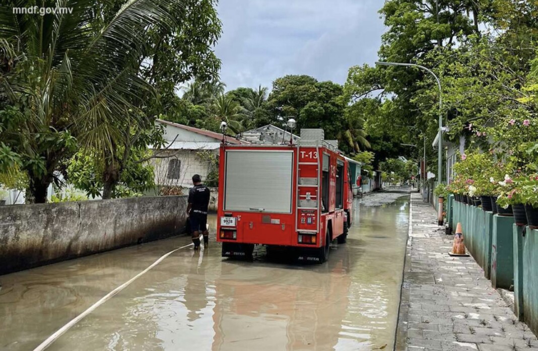 ވިއްސާރަވެ، ބޯކޮށް ވާރޭވެހުމުގެ ސަބަބުން، ޏ.ފުވައްމުލަކު ސިޓީ، މިސްކިތްމަގު އަވަށުގައި ބައެއް ސަރަހައްދުތަކުގައި ފެންބޮޑުވެގެން، އެމްއެންޑީއެފް ސަދަން އޭރިއާ ކޮމާންޑް، ޏ.ފުވައްމުލަކު ފަޔަރ ސްޓޭޝަނުން، ފެން ހިއްކުމުގައި ހަރަކާތްތެރިވާން ފަށައިފިއެވެ.