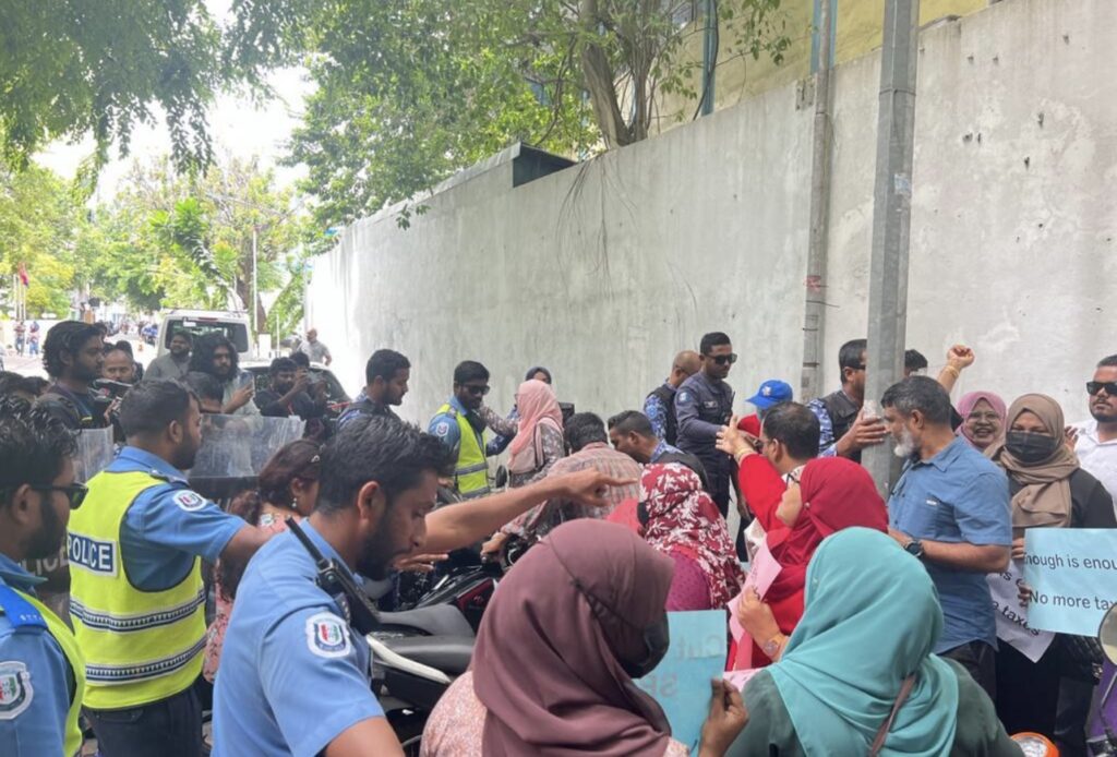 ޓެކްސް ބިލާ ދެކޮޅަށް ޕީޕީއެމް، ޕީއެންސީން މަޖިލިސް ކުރިމަތީ ކުރަމުންދާ އިހުތިޖާޖުގެ ތެރެއިން ތިން މީހަކު ހައްޔަރުކޮށްފިއެވެ.