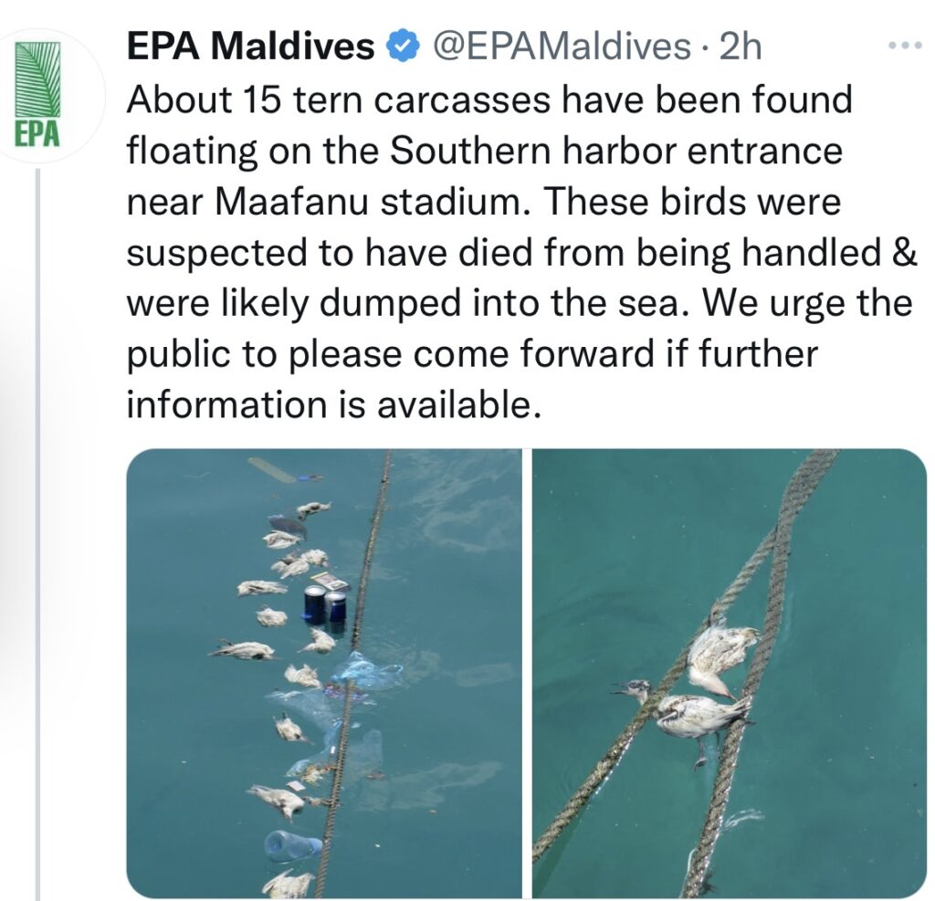 އެންވަޔަރަމަންޓަލް ޕްރޮޓެކްޝަން އޭޖެންސީ، އީ.ޕީ.އޭއިން ބުނީ، މާލޭ ދެކުނުފަރާތު ހާބަރަށް ވަންނަ ސަރަޙައްދުން މަރުވެފައި އޮއްވާ ފެނިފައިވަނީ 15 ވައްލަ ކަމަށެވެ.