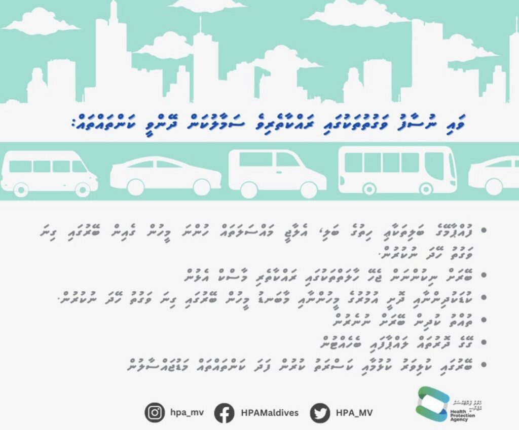 ރާއްޖޭގެ ބޮޑު ބައެއްގައި ވައި ތަގައްޔަރުވެ ޖައްވު ނުސާފުވެފައި ވާތީ ނުރައްކާތެރިކަން ކުރިމަތި ވެދާނެ ކަމަށް ބަލައި ބޭރަށް ނިކުމެ އުޅޭ އިރު ރައްކާތެރިކަމުގެ ފިޔަވަޅު އެޅުމަށް ހެލްތު ޕްރޮޓެކްޝަން އެޖެންސީ (އެޗްޕީއޭ) އިން އިލްތިމާސް ކޮށްފިއެވެ.