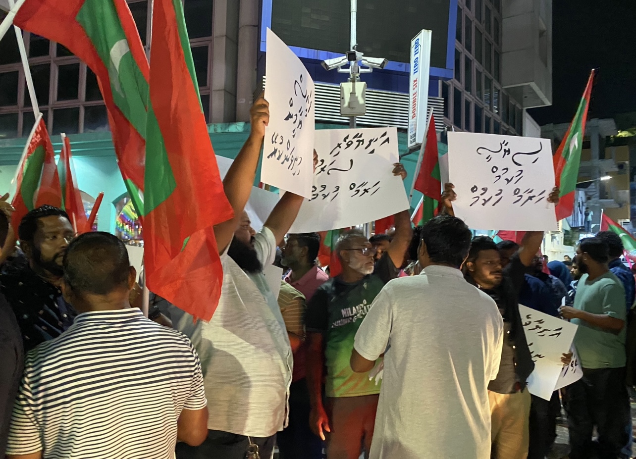 ކުރީގެ ރައީސް ޔާމީން 11 އަހަރަށް ޖަލަށްލުމަށް މިއަދު ކުރިމިނަލް ކޯޓުން ހުކުމް ކުރުމުން ޕީޕީއެމްގެ ސަޕޯޓަރުން މިރޭ މާލޭ މުޒާހަރާ ފަށައިފިއެވެ.