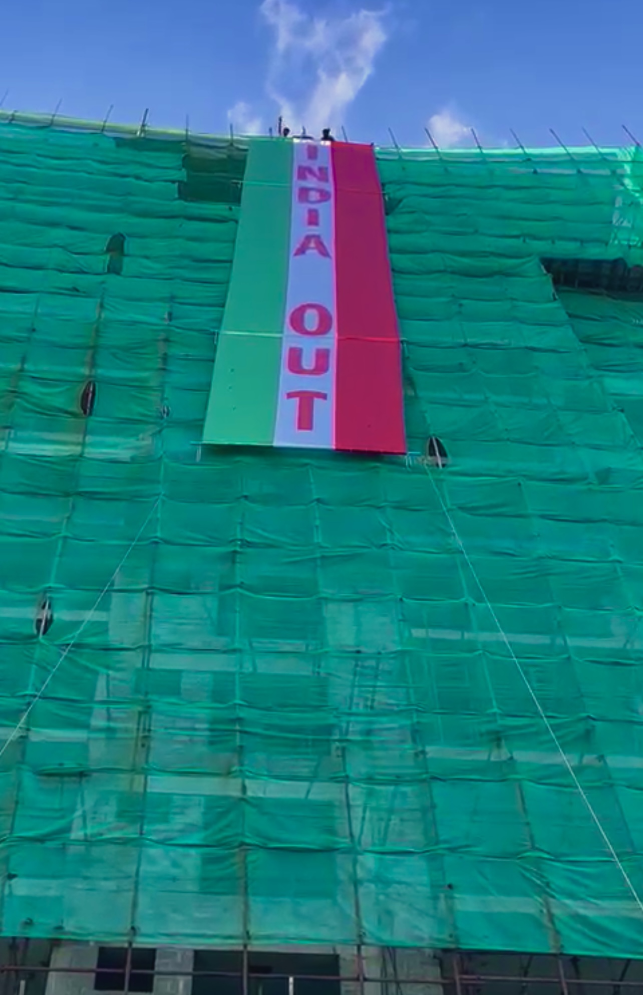 އިންޑިއާ އައުޓް ކެމްޕެއިންގެ ދަށުން ކުރީގެ ރައީސް ޔާމީންގެ ގެކޮޅުގެ އިތުރުން ޕީޕީއެމްގެ އޮފީސް ހުންނަ އިމާރުގައި ވެސް ވަނީ މިހަފުތާ ތެރޭގައި ބޮޑެތި ބެނާތަކެއް ދަމާފައެވެ.