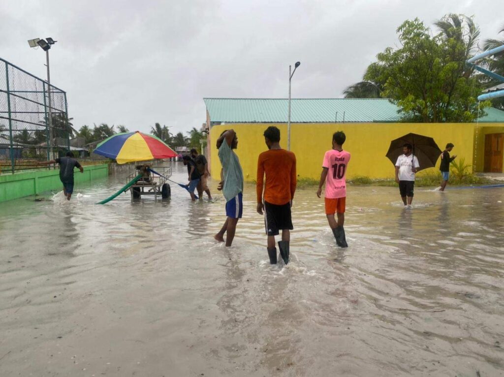 ރާއްޖެއަށް މިހާރު ކުރަމުންދާ ވިއްސާރައިގެ އުދަ އަރައި އެންމެ ބޮޑު ގެއްލުމެއް ލިބިފައިވަނީ ގދ. މަޑަވެއްޔަށެވެ. އެގޮތުން އުދައަރައި ލިބުނު ގެއްލުންތަކުން 4 އާއިލާއެއް އަދިވެސް ތިބީ ކައުންސިލް އިދާރާގެ ވަގުތީ ބޯހިޔާވަހި ކަމުގައެވެ. (ފޮޓޯ: އަޒުހާޓް)
