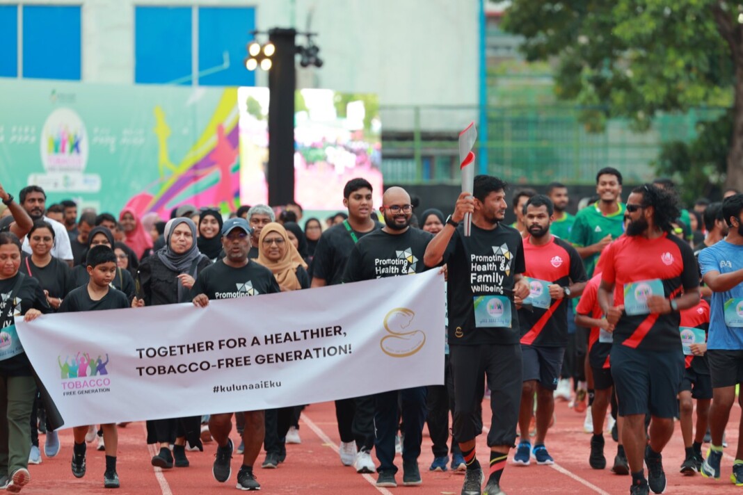ދުންފަތުން ރައްކާތެރި ޖީލެއް ބިނާކުރުމަށް ސަރުކާރުން ނިންމާފައިވާ “ޖެނެރޭޝަނަލް ބޭން” އާ ގުޅުވައިގެން، “ނޭޝަން ޓޯޗް ރަން” ގެ ނަމުގައި 24 ގަޑިއިރަށް ކުރިއަށްގެންދާ ދުވުމެއް ވަނީ ފަށާފައެވެ. މި ދުވުން ފެށީ އިއްޔެ ހަވީރު އެކުވެނި ޓްރެކްގައި ބޭއްވި ޚާއްސަ އިވެންޓެއްގައެވެ. މި އިވެންޓް ފައްޓަވާ ދެއްވީ ސިއްހީ ވަޒީރު އަބްދުﷲ ނާޒިމް އިބްރާހިމެވެ.