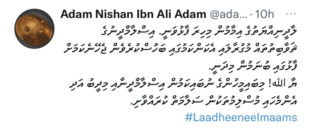 އެގޮތުން މަހްލޫފްގެ ވާހަކައާ ގުޅިގެން ޝައިޚް ނިޝާން ވިދާޅުވީ ލާދީނިއްޔަތުގެ އިމާމުން މިހިރަ ފާޅުވަނީ ކަމަށެވެ. އަދި އިސްލާމްދީނުގެ ޘަވާބިތުތައް މުގުރާލައި އެ ކަންކަމުގައި ބަހުަސްކުރެވެން ޖެހޭނެކަމަށް ފާޅުގައި ބުނަމުން އެދަނީކަމަށް ވެސް ނިޝާން ވިދާޅުވިއެވެ.