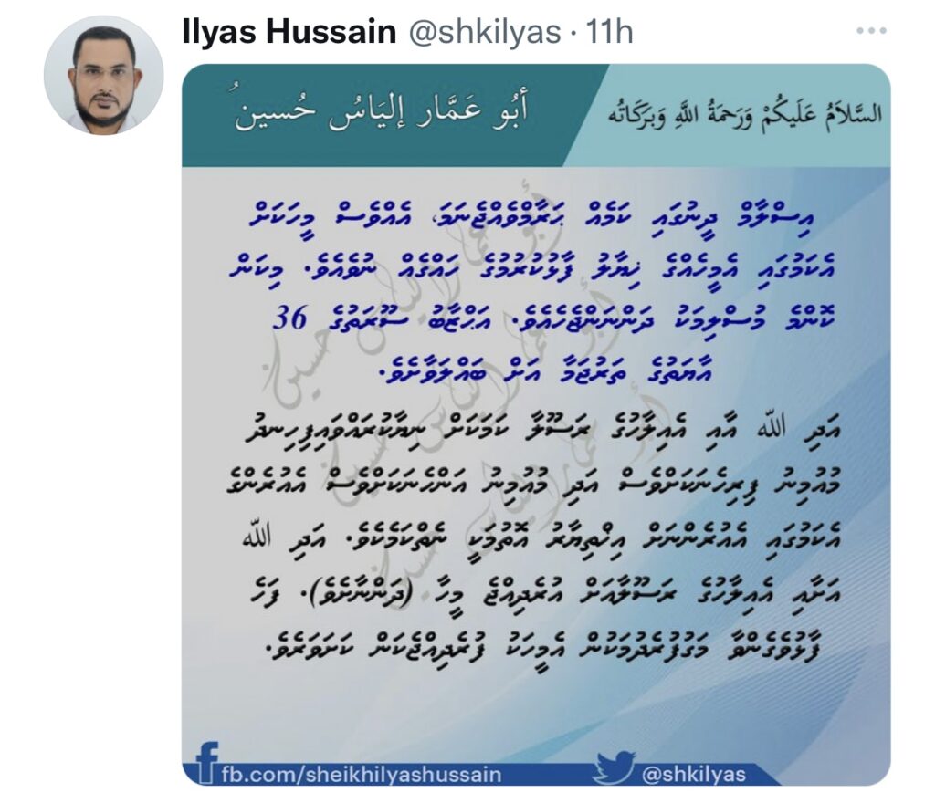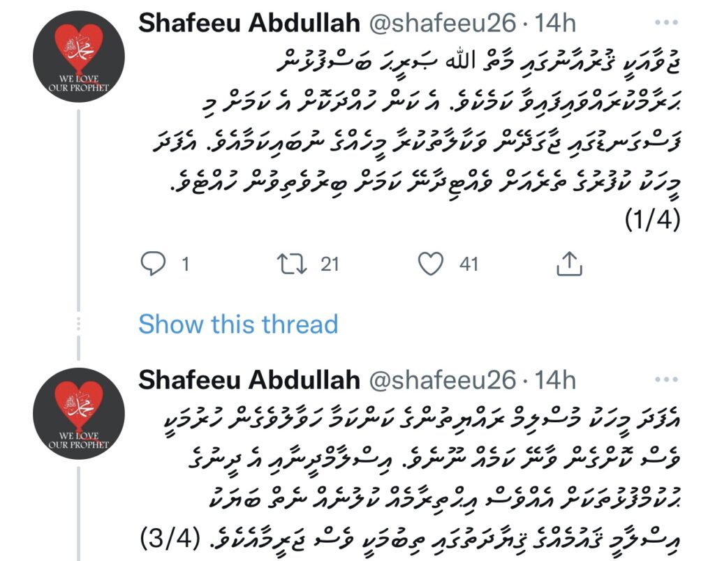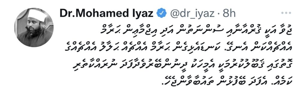 އެފަދަ މީހަކު ކުފުރުގެ ތެރެއަށް ވެއްޓިދާނޭ ކަމަށް ބިރުވެތިވުން ހުރި ކަމަށާއި މިއީ އާދައިގެ ކަންކަމެއް ނޫން ކަމަށް ޝެއިހު ޝަފީއު ވިދާޅުވިއެވެ.
