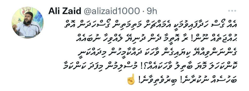 އަދި ރާ އޮތީމާ ދެން ދުނިޔޭ ލެއްވިހާ ނުބައެއް ގެންނަންވިއްޔޭ ކިޔައިގެން ވާހަކަ ދައްކާމީހުން މިދައްކަނީ ކޮންކަހަލަ މޮޔަ ބާތިލު ވާހަކައެއްތޯ ޝެއިހު ޒައިދު ވަނީ ސުވާލު އުފައްދަވާފައެވެ.