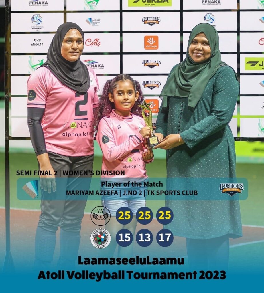ޓީކޭ ސްޕޯރޓްސް ކްލަބުން ސެޓްތައް ގެންގޮސްފައިވަނީ 25-15، 25-13 އަދި 25-17 އިންނެވެ.