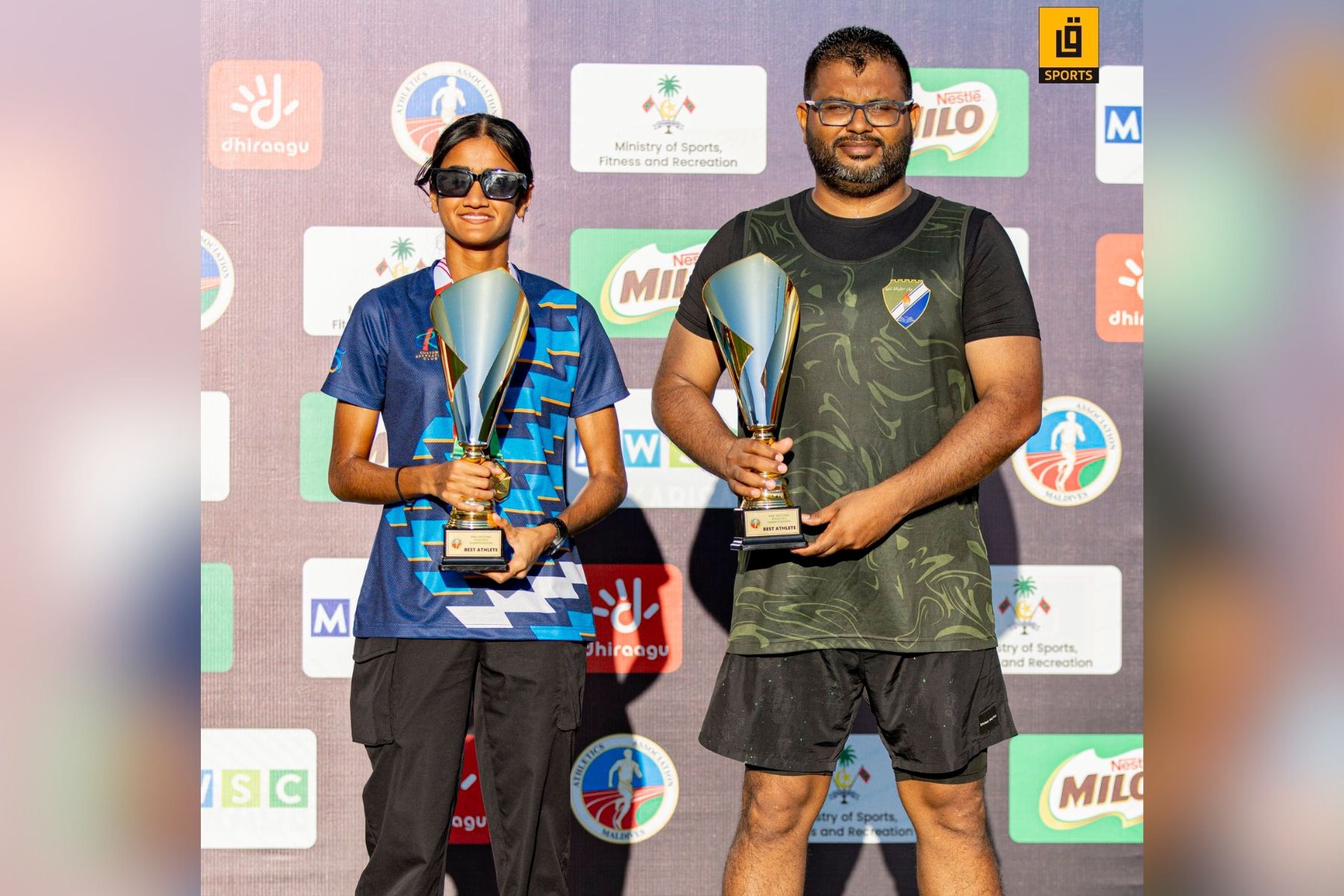 ގައުމީ އެތުލެޓިކްސް މުބާރާތުގެ އެންމެ މޮޅު އެތުލީޓުންގެ އެވޯޑް، ފީލްޑް އިވެންޓްގެ ދެ އެތުލީޓުންކަމަށްވާ ހަސަން ޝަމްއޫނާއި އާއިޝަތު ޝައިމް އަޒީޒު ހޯދައިފިއެވެ. މިއީ މުބާރާތުގެ 34 އަހަރުގެ ތާރީޚުގައި ދުވުންތެރިޔަކު ނޫން ދެ ފީލްޑް އެތުލީޓުން އެންމެ މޮޅު އެތުލީޓުންގެ މަޤާމު ހޯދި ފުރަތަމަ ފަހަރެވެ.