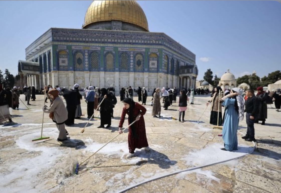 ސޯޝަލްމީޑިއާގައި ދައުރުވަމުންދާ ފޮޓޯ އަދި ވީޑިއޯތަކުން ފެންނަނ ގޮތުން މަސްޖިދުލް އަގުސާ ސާފުކުރުމުގައި ފަލަސްތީނުގެ ކުދި ބޮޑު އެންމެން ހަރަކާތްތެރިވަމުންދެއެވެ.