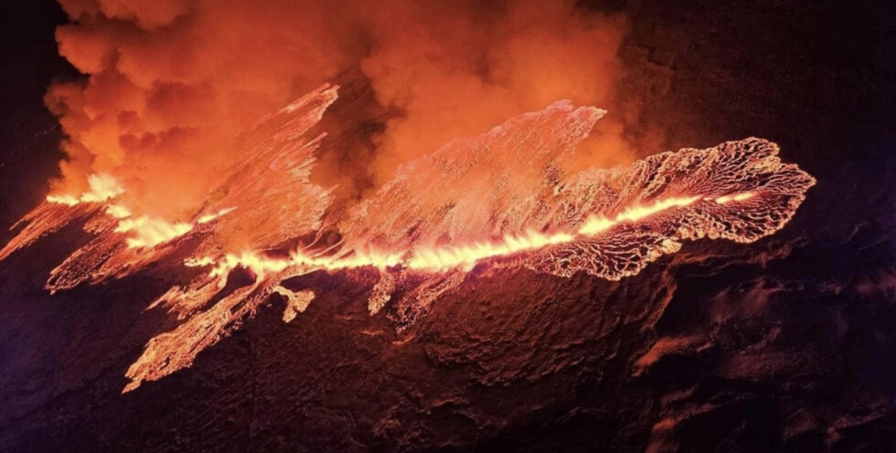 އައިސްލޭންޑްގެ ހުޅަނގު ދެކުނުގައި އަލިފާން ފަރުބަދައެއް ގޮވަން ފެށީ ލާވާ ފައުންޓޭންތައް ވައިގެ ތެރެއަށް ގެއްލި ގޮސް، ވެރިރަށް ރެކްޖާވިކްގެ މެދުގައި އުޑުމަތި އަލިވަމުން ދަނިކޮށެވެ.