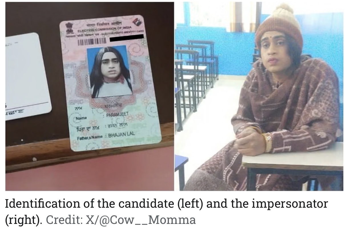 ޕަންޖާބުގެ ފަރީދުކޯޓްގެ އިމްތިހާނު ސެންޓަރެއްގައި ޒުވާނަކު އޭނާގެ ލޯބިވެރިޔާގެ ސިފަ ޖެހިގެން، އިމްތިހާނުގައި ބައިވެރިވާން އުޅެނިކޮށް އޮފިޝަލުންނަށް ފަޅާއަރައިފި އެވެ.